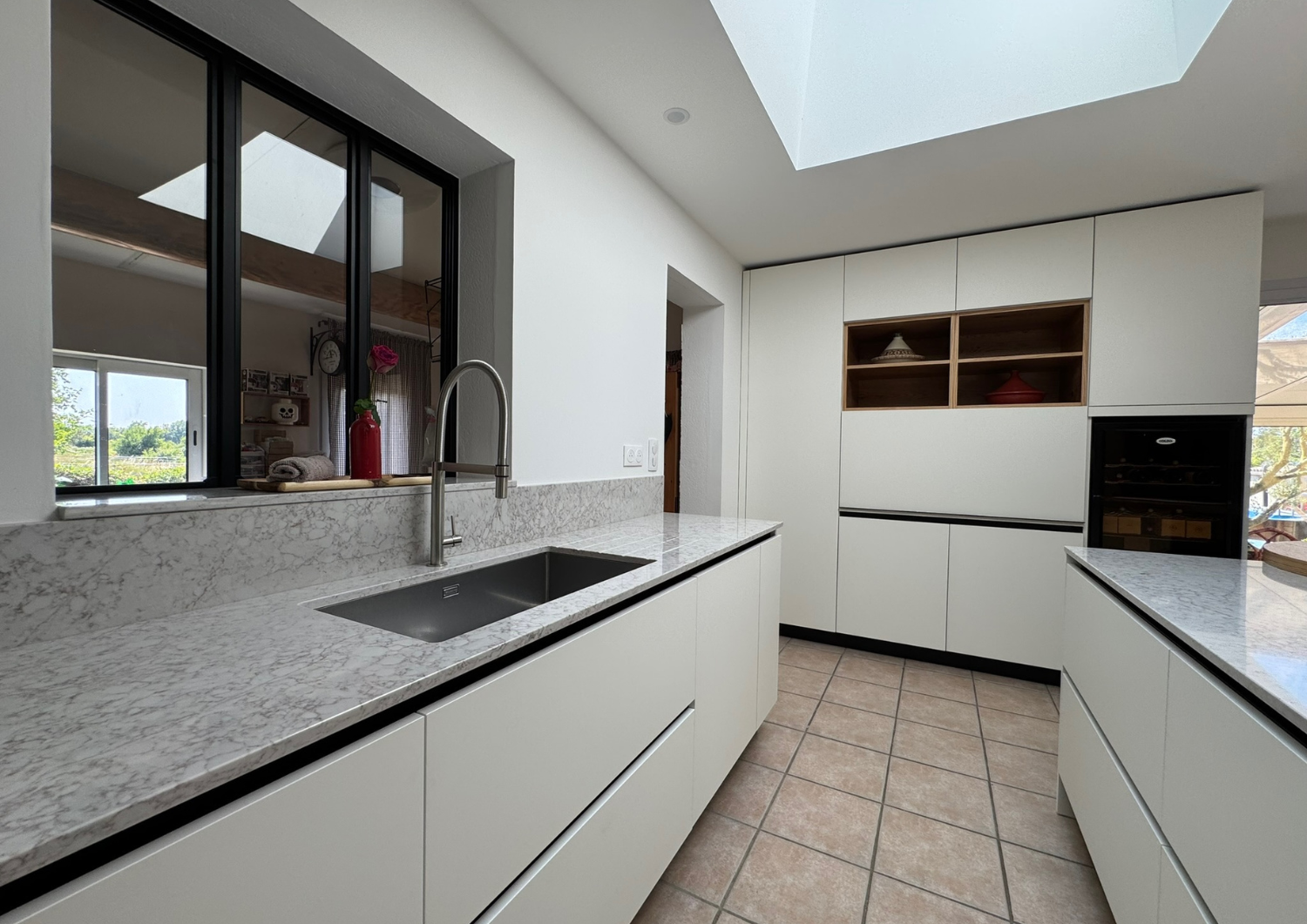 Parce que nous savons combien la cuisine occupe une place essentielle dans le quotidien, lieu de partage, de création et de convivialité; nous concevons chaque projet avec la même exigence : allier fonctionnalité, durabilité et bien-être. Conscients du temps que l’on y passe et de l’importance de s’y sentir bien, nous accordons à chaque détail l’attention qu’il mérite.