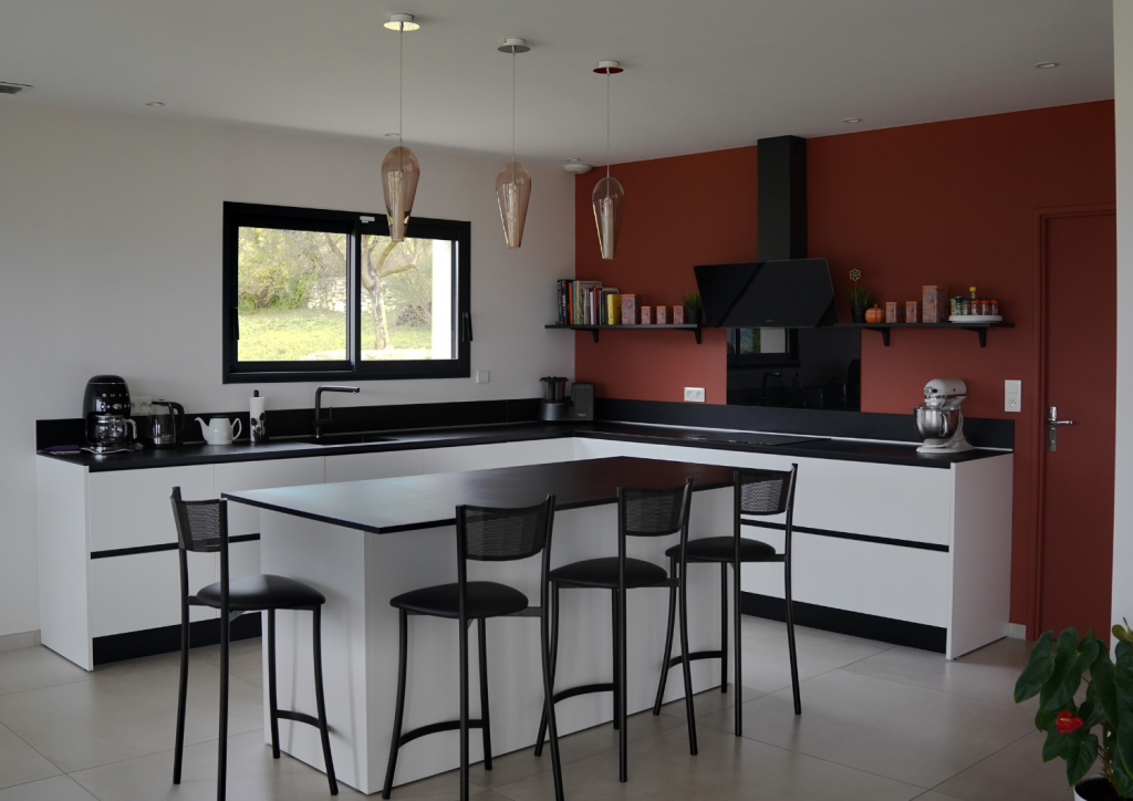 Selon le projet, le quartz composite offre une alternative durable et esthétique. Résistant à la chaleur et aux taches, il se révèle particulièrement adapté aux cuisines familiales ardéchoises où l’on cuisine encore vraiment, où les conserves maison et les confitures locales rythment les saisons.